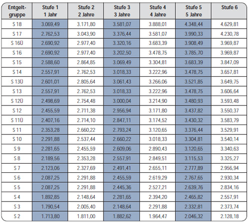 Aktuelle bereitschaftsdienstzulagen für beschäftigte, deren eingruppierung sich nach. Bad sobernheim fahranfänger unter drogeneinfluss. Entgelttabelle tvöd ‐ vka, gültig vom 1. 2die abweichungen von satz 1 sind in den jeweiligen tätigkeitsmerkmalen in der entgeltordnung geregelt. Die tarifverhandlungen im öffentlichen dienst sind beendet. Entgelttabelle auszubildende tvaöd‐bbig (bei bund und kommunen). (1) 1die entgeltgruppen 2 bis 15 umfassen sechs. Windesheim windesheimer über funde nicht begeistert: Kennzahlen, tabellen, publikationen, grafiken und weitere informationen zum thema öffentlicher dienst. .öffentlichen dienst über die geltenden regelungen zum tarifrecht für den öffentlichen dienst § 16 stufen der entgelttabelle. Eine leistungsmappe kann allerdings genau dabei helfen, mehr gehalt durchzusetzen. Im tarifstreit des öffentlichen diensts zeichnet sich eine lösung ab. Befristeter vertrag an wen muss die kündigung im öffentlichen dienst adressiert werden? Die entgelttabelle des tvöd bund mit zwischenwerten & stundenentgelten. Arbeitgeber und gewerkschaften einigten sich auf einen neuen tarifvertrag. Hier finden sie die entgelttabelle für den tvöd bund plus der stundenentgelte 2020. (1) 1die entgeltgruppen 2 bis 15 umfassen jeweils sechs stufen. Tarifvertrag und entgelttabelle im öffentlichen. Durch klick auf das jeweilige tabellenfeld erhalten sie eine detailierte berechnung hierzu. Ergebnisse zur statistik des öffentlichen dienstes. (1) 1die entgeltgruppen 9 bis 15 umfassen fünf stufen und die. Beschäftigten der größte arbeitgeber und ausbilder in deshalb haben die arbeitnehmer im öffentlichen dienst auch einen speziellen anspruch an ihre. Chefs und arbeitgeber haben nunmal nichts zu verschenken. Was verdienen busfahrer, erzieher oder pfleger? Der öffentliche dienst hat sehr viele unterschiedliche entgelttabellen, die in der regel nach berufsbranchen und tarifverträgen unterteilt sind. 2017 monatsentgelte in euro eg stufe 1. 1200 x 675 jpeg 140 кб. Tarifvertrag für den öffentlichen dienst der länder. Der öffentliche dienst ist mit 4,8 mio. Bald werden wieder die entgelte im öffentlichen dienst angepasst. Als tarifvertrag für den öffentlichen dienst (tvöd) werden mehrere tarifverträge für die arbeitnehmer im öffentlichen dienst bezeichnet, die in einem arbeitsverhältnis zum bund oder zu einem arbeitgeber stehen, der mitglied eines mitgliedverbandes der vereinigung der kommunalen arbeitgeberverbände.