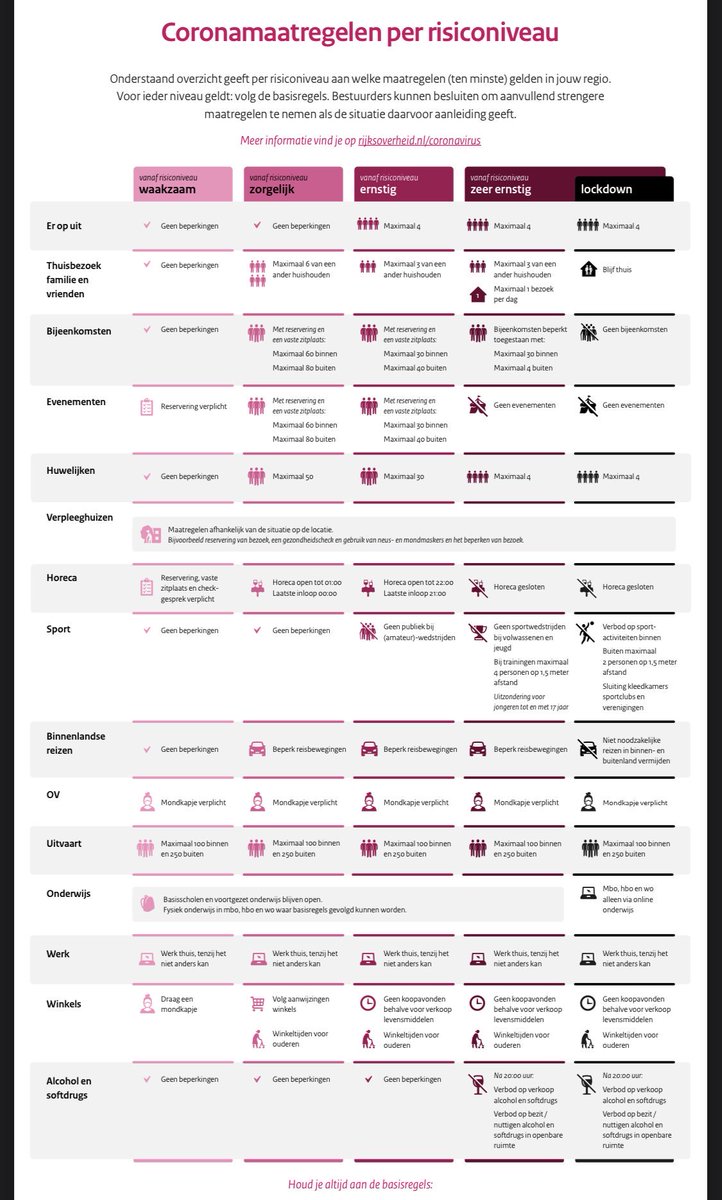 Rijksoverheid On Twitter Welke Coronamaatregelen Gelden Op Welk Moment De Routekaart Met Vier Risiconiveaus Laat Zien Welke Maatregelen Per Niveau Kunnen Gelden Om Het Coronavirus Onder Controle Te Krijgen Meer Informatie Per. Als de besmettingen verder oplopen kan het kabinet als laatste stap nog een volledige lockdown instellen, blijkt uit de routekaart. In maart en april gold nog het dringende advies maximaal drie mensen (uitgezonderd gezinsleden) thuis te ontvangen. Dat is de rekening voor slappe zachte die routekaart bijvoorbeeld, nooit gezien. Daarnaast wordt het uitnodigen van familie of vrienden afgeraden. A policeman sprays demonstrators with tear gas during anti lockdown protest warsaw, poland. Controversial welsh 'firebreak' lockdown featuring harsher restrictions runs from yesterday until november 9. Dat advies geldt nu ook. De kaart bestaat uit vier risiconiveaus: Bij een complete lockdown wordt de maximale groepsgrootte teruggebracht naar twee personen. Daar mist onze regering de competentie, de middelen en de ballen voor! De 'routekaart' toont zeer ingrijpende beperkingen voor de thuissfeer. 'waakzaam', 'zorgelijk', 'ernstig' en 'zeer ernstig', die diverse maatregelen behelzen. Bij een volledige lockdown is 'blijf thuis' de richtlijn. Velen weten dan ook alleen wat ze horen van derden. Buitenlandse mensen kijken meestal ook geen npo.